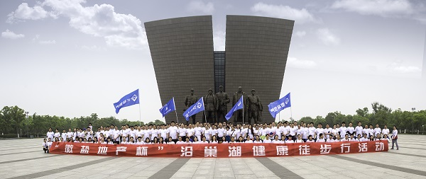毅路向前,堅(jiān)持到底!5月14日上午7時(shí)45分,2016年“徽鹽地產(chǎn)杯”在肥鹽業(yè)系統(tǒng)職工健身走活動(dòng)啟動(dòng)儀式在合肥市濱湖新區(qū)渡江戰(zhàn)役紀(jì)念館南廣場舉行。省公司領(lǐng)導(dǎo)石俊、王良貴、顏?zhàn)谌A、許建勝、楊曉彬、王思軍等出席儀式,并為來自全系統(tǒng)在肥的200余名職工領(lǐng)走。