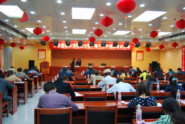 4月26日下午,安徽鹽業(yè)典當(dāng)有限公司(籌)經(jīng)營(yíng)管理人員公開(kāi)招聘筆試在鹽業(yè)大廈23樓會(huì)議室舉行。本次招聘職位為公司總經(jīng)理1名、財(cái)務(wù)部經(jīng)理1名、客戶經(jīng)理3名。招聘公告通過(guò)《安徽日?qǐng)?bào)》、《新安晚報(bào)》、《合肥晚報(bào)》、新安人才網(wǎng)等媒體發(fā)布后,社會(huì)反響較為強(qiáng)烈,參與人數(shù)眾多。經(jīng)資格審查后,來(lái)自省內(nèi)的59名中青年人才參加了考試,考聘比例為11.2:1,個(gè)別職位考聘比例達(dá)到21:1。